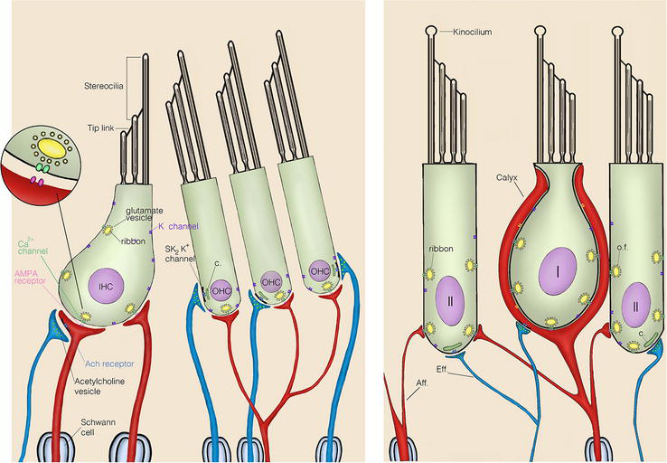 图10.1 成年哺乳动物的听觉和前庭毛细胞及其神经细胞,来自[4]。