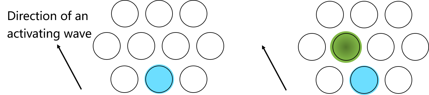 图24.2 神经元阵列中脑电波(或扩散较远的神经递质)在时间上的推进导致信息存储在不同神经元,形成空间位置关系。
